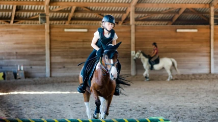 L’équipe d’instructeurs experimentés, prend grand soin de faire correspondre les cavaliers avec les chevaux afin de développer rapidement un climat de confiance pour les jeunes apprenants. Tout le programme est conçu en vue de la compétition du vendredi qui intègre dressage et saut d’obstacles (selon les groupes de niveaux). Les participants bénéficient d’un entrainement complet, défini selon leurs aptitudes, l’objectif étant de progresser en confiance et en maniement du cheval.