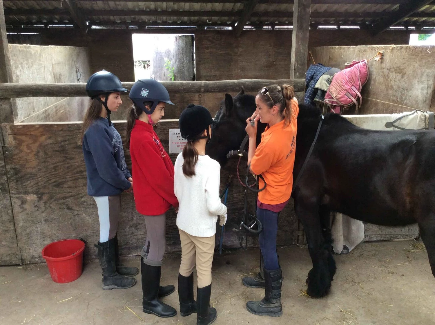 L’équipe d’instructeurs experimentés, prend grand soin de faire correspondre les cavaliers avec les chevaux afin de développer rapidement un climat de confiance pour les jeunes apprenants. Tout le programme est conçu en vue de la compétition du vendredi qui intègre dressage et saut d’obstacles (selon les groupes de niveaux). Les participants bénéficient d’un entrainement complet, défini selon leurs aptitudes, l’objectif étant de progresser en confiance et en maniement du cheval.