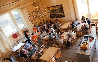 Une formule en résidence avec des 'maisons’ séparées pour les filles et pour les garçons. Un séjour en chambre individuelle ou partagée (twin), salle de bains partagée et pension complète sur le campus.